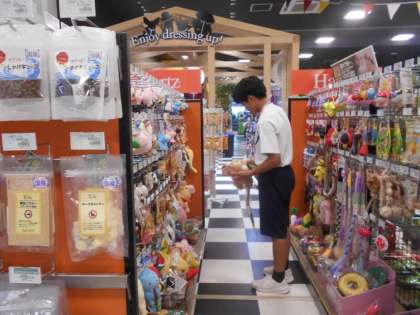 今日は、保護者ボランティアの方3名の方にご協力をいただき、事業所を巡回していただきました。ワンラブでは、動物の世話やペット用品の陳列、フロア清掃等の作業をしていました。店長さんから「大変よく頑張っています」とお褒めの言葉をいただき、より一層やる気に溢れている西中生です。