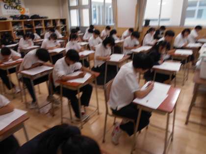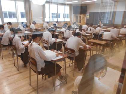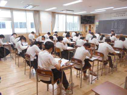3年生は実力テストに取り組みました。写真を撮るのも気を遣うほど、真剣に臨んでいました。