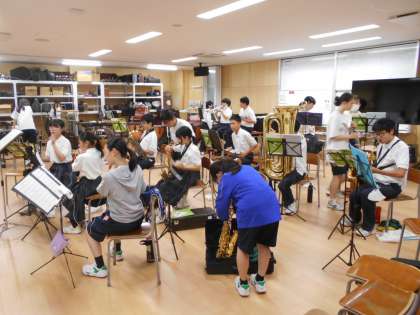 吹奏楽部は今週末にコンクールを控えており、2年生も「14歳の挑戦」後、駆け付けて練習に加わっています。美術部は9月上旬の青少年美術展に向けて、夏が作品づくりの正念場です。