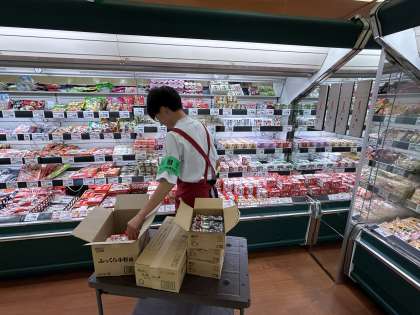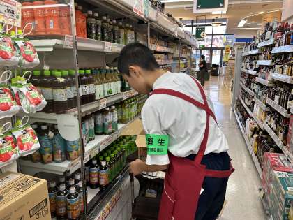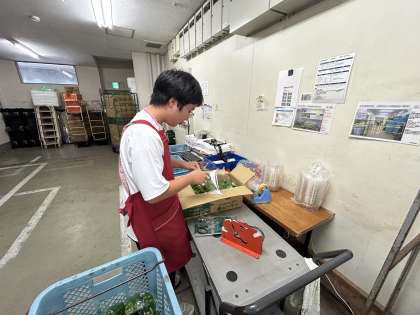 食品販売では、野菜の袋詰めや商品の陳列作業を行いました。お客様のことを考えて一生懸命に活動に取り組んでいました。