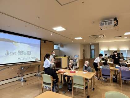 福祉施設で活動では、利用者とレクリエーションを一緒に楽んでいました。触れ合いを通して、生徒の姿にも変化が見えてきました。生徒の笑顔がとても印象的でした。