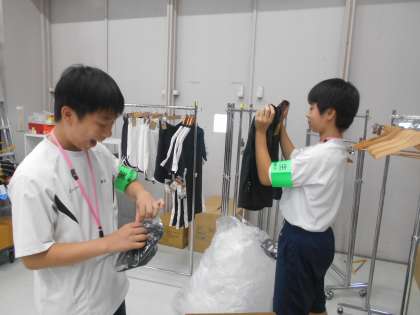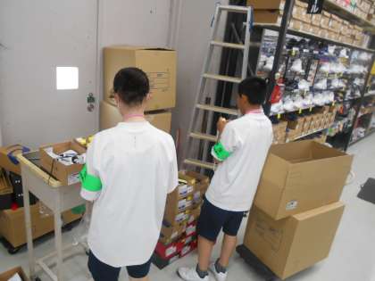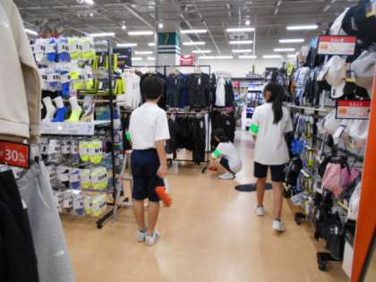 保護者ボランティアの方に、写真を撮影してもらいました。店内の清掃、商品の割引シール貼り、タグ付け、ハンガー掛け等、商品を販売する準備をしていました。一生懸命に活動していました。