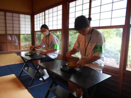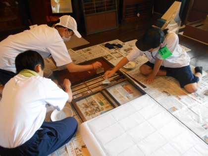 民俗民芸村では、古民家の障子の張替え作業のご指導や華道・茶道の教えを受けました。それぞれの会館で、個別に、学芸員さんから教えを受けることで、大変有意義な学びになりました。