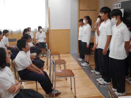 2年生は「14歳の挑戦」を終えて久しぶりの登校でした。今日は解団式を行い、5日間を振り返って感想を伝え合いました。