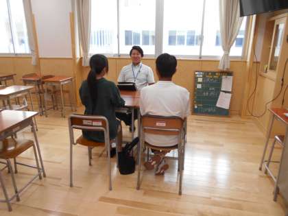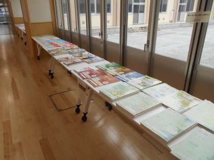 3年生の懇談内容は、きっと進路に関することが多くなっているのでは。控室前の廊下には、夏休みの学習用の問題集見本も並べられています。