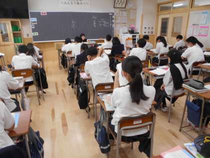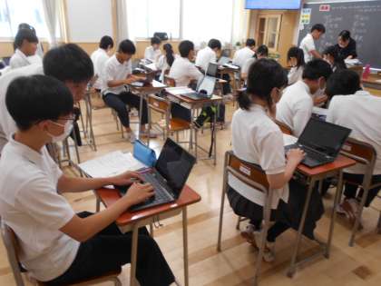 1組と2組では、教科は違いますがクロムブックを使って調べる学習に取り組んでいました。
