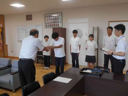 部活動やクラブ活動等で全国大会や北信越大会に出場する生徒に対し、育成会から激励費が送られました。