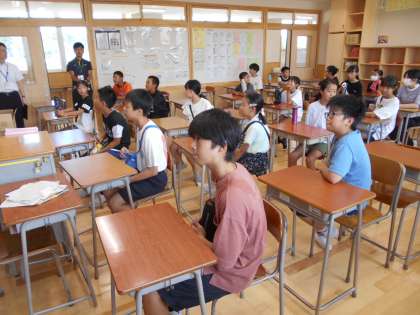 本日午前、神明小学校6年生が校長先生と担任の先生の引率のもと、自転車で本校を訪れました。中学校までの登校ルートを知ることが目的で、他にも校舎内や部活動を見学しました。