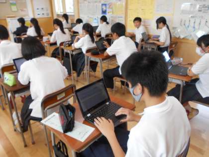 クロムブックを使って課題の提出状況を入力したり、2学期の個人目標づくりに取り組みました。