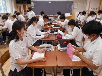 2組国語では、文を読んで互いに感想を伝え合う活動をしていました。