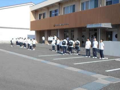 来週の令和6年度後期生徒会役員選挙に向けて、立候補者は今日から3日間、朝の登校時に生徒玄関先で選挙運動を行うことができます。各立候補者は、選挙管理委員に見守られながら、登校する生徒に積極的にアピールしていました。