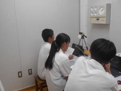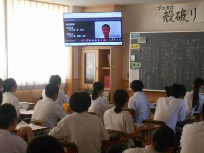 今回の選挙ではオンラインで立会演説を行いました。会長候補者2名、副会長候補者5名はそれぞれの公約を伝え、全校生徒は教室で候補者の演説を聴いていました。