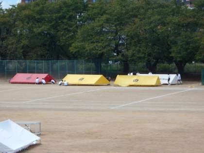 3組保健体育では、体育大会団テントの幕張りをしました。団活動中の休憩場所が確保されました。
