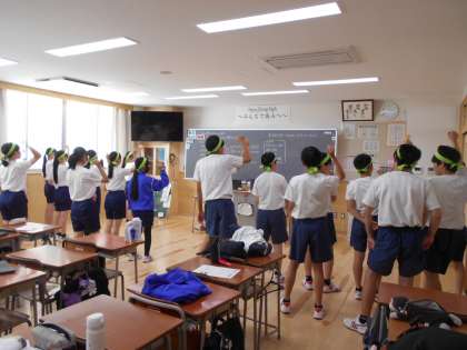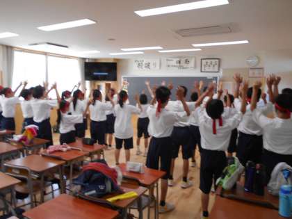 今日から体育大会の団演技練習を開始しました。WBGTの数値が高く、熱中症の心配があったので、室内での活動しました。