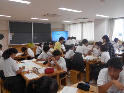 1学年対象の学校保健員会を行い、生徒は2つの分科会に分かれました。本校のスクールカウンセラーが講師としてグループワークを設定し、生徒たちはそれぞれ抱えているストレスと模造紙に書き込み、その対処についてグループで意見を交換しました。