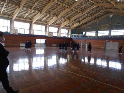 仮校舎の生徒玄関から教室まではとても遠いですが、早く様々なことを覚えようとしている元気な1年生です。