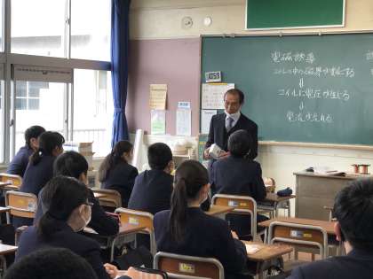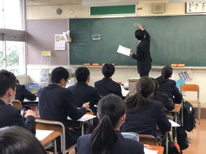 中教研学力調査、直後の授業は、テストの問題を振り返りながら先生が解説をしています。