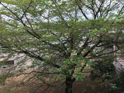 ☆写真は、2年3組の廊下前の桜です。すっかり葉桜になりました。