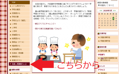 学校ホームページのカテゴリに「生徒・保護者ページ」を作成しました。