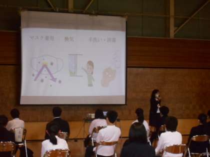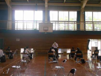 1年生の次の登校日は、5月27日(水)です。生徒玄関での「密」を避けるために、7時50分から8時10分の間に登校されるようお願いします。