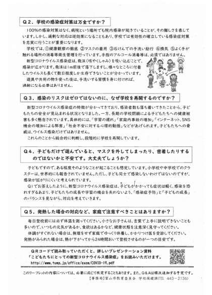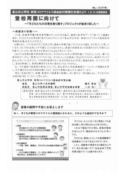 本市では、富山市立学校新型コロナウイルス感染症対策会議を設置しました。未だ解明されていない新型コロナウイルス感染症に対し、児童生徒等が安心して学び、心身共に健康に学校生活を送ることができるようにするためです。