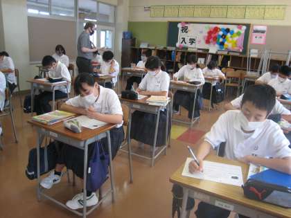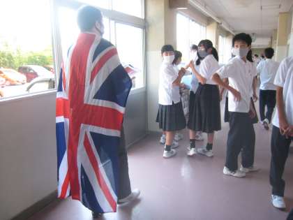 1年1組です。ユーモアセンス抜群のマシュー先生は、登場の仕方もユニークです。