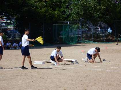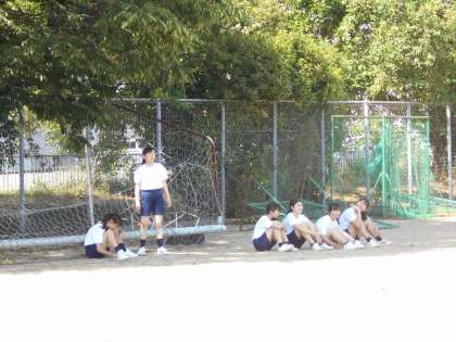 3組女子 保健体育の授業です。グランドで50m走をしています。