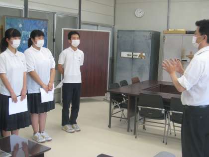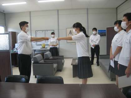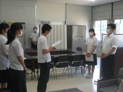 生徒会長が抱負を述べ、校長先生から激励の言葉をいただきました。期間は短くとも、制約があろうとも、熱い『西中愛』で、みんなの記憶に残る生徒会活動を行います!