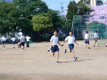 雨上がりの月曜日、澄み切った青空の下に元気な生徒の姿がありました。