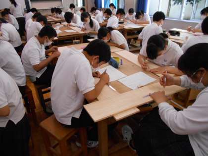 昨日に引き続き、真夏日の予報の中、生徒達は学習に励んでいました。2学年は学年集会を行いました。