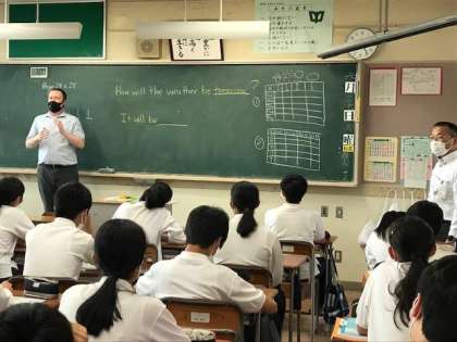 2年3組では、ALTの先生と一緒に英語の授業(上)