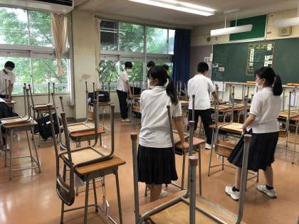 週に一度の分担清掃をしています。 来週からは、通常通りの清掃が再開されます。