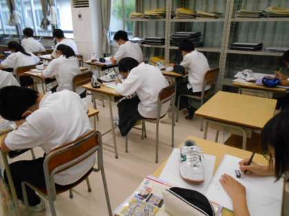 4組 美術 自分のシューズをよく観察してスケッチしています。
