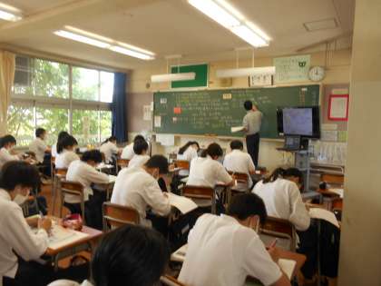 4組は音楽、3組は社会の授業の様子です。期末テストが近づいており、皆、真剣に授業に取り組んでいます。