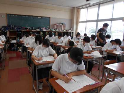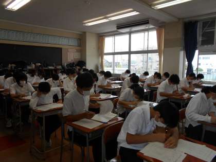 7月30日(木) :2学年 期末考査の様子 公開日 2020/07/30 更新日 2020/07/30 2学年 期末考査1日目は、音楽、英語、技術・家庭の3教科に取り組みました。 上:1組 中:2組 下:3組