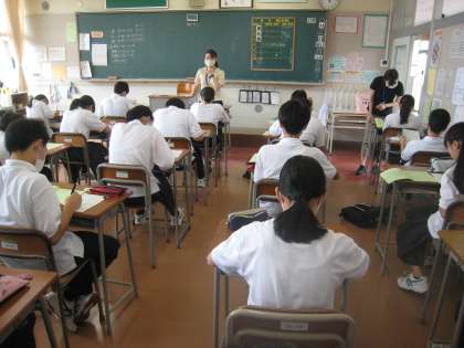 期末考査を終え、1学期も残すところ約1週間となりました。各人が学級や日常の行動等を振り返りました。1年1組、2組です。