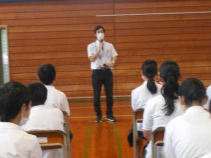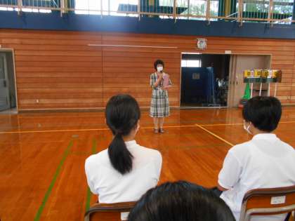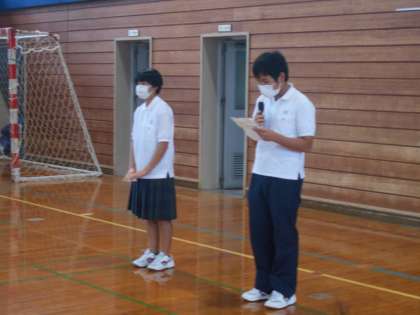 8月7日(金):第2学年 学年集会 公開日 2020/08/07 更新日 2020/08/07 2学年 今学期の締めくくりとして、学年集会を行いました。 教員からは・・・ ・夏休みの諸注意 ・2年生になってからの、成長ぶり ・学校の中心になる2学期に活躍するために、今頑張ってほしいこと 等を話しました。 学年生徒会からは、学年全体の「1学期を振り返って」を発表しました。