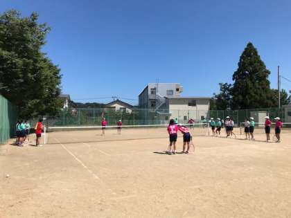 8/29(土) ソフトテニス部の休日練習 公開日 2020/08/31 更新日 2020/08/31 生徒会・部活動 快晴の中、8月最後の週末の部活動練習 写真上 男子は、先週の岩瀬カップを振り返り、サーブ練習 写真中 同上 写真下 女子は、試合形式の練習も…1年生に、審判の仕方を指導する生徒も