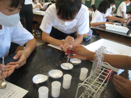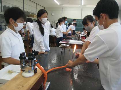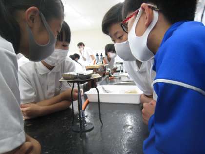 グループごとの実験の様子です。しっかりとマスクを着用して、一生懸命取り組みました。