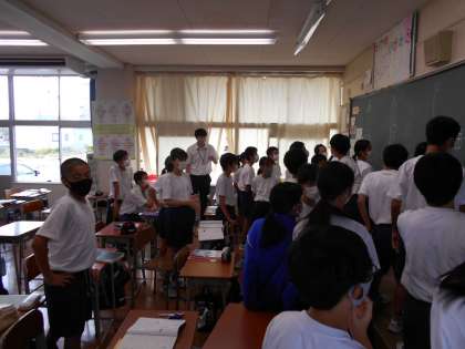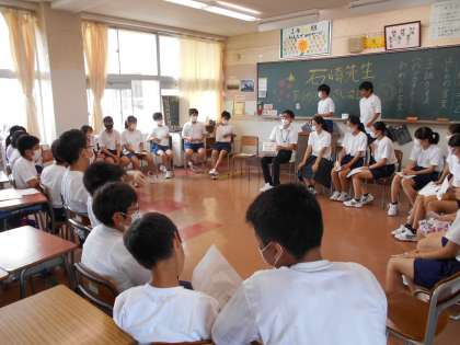 1年1組・3組で、教育実習の先生とのお別れ会が開かれました。3週間一緒に過ごした先生方に感謝を伝えました。