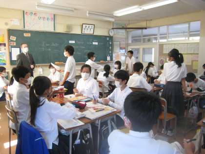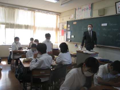 1年1組の英語の様子です。マシュー先生との授業でした。