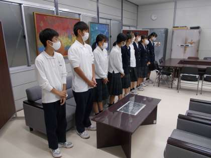 10月10日(土)に開催される第44回富山県中学校ジュニアオリンピック陸上競技大会に、本校から出場する選手が校長室に集いました。校長からは「精一杯がんばってきてほしい。記録はあとからついてくる。」と激励の言葉を送りました。各選手がベストパフォーマンスを見せてくれることを期待します。