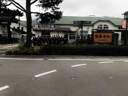バス内で視聴した「君の名は」の舞台、飛騨古川駅です。
