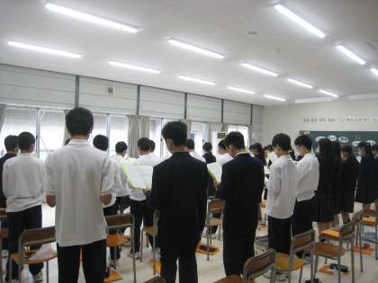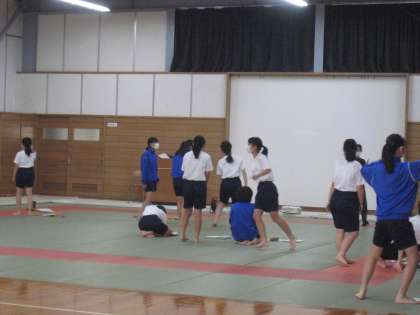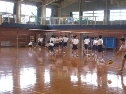 3年生が校外学習でいないせいか、少しさびしい感じのする校舎ですが、中間考査を終えた1年生が合唱曲の練習、バレーボール、ダンスに熱心に取り組んでいます。