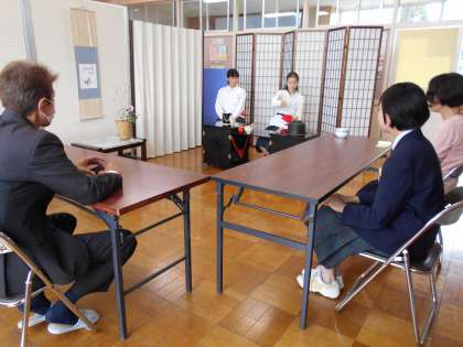 校外学習や体育大会等で、練習が充分にできない中でのお披露目でしたが、3年間の真面目な練習態度のおかげで、本番では落ち着いてお点前ができました。
