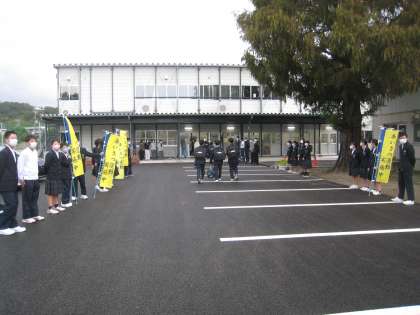 あいさつ運動2日目を迎えました。本日は生徒玄関前で行いました。時折小雨が降る中でしたが、元気な挨拶の声が響いていました。