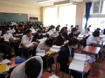 1年の理科の授業では、水溶液の濃度について学習しました。2年の数学の授業では、多角形の内角と外角について学習しました。3年の英語の授業では、ハロウィーンに関する英文を読みました。