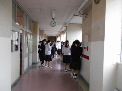 保健委員会では今日から3日間、歯みがき強化デーを実施し、給食後の歯みがきを呼び掛けを行います。水道が少なく大変ですが、譲り合って歯みがきをしていました。