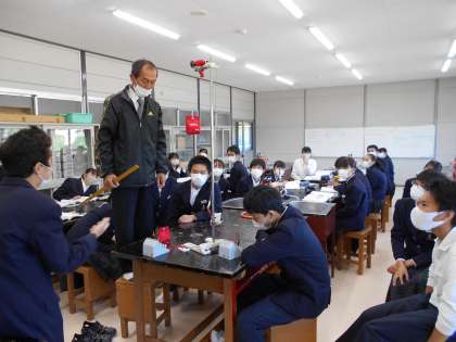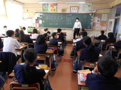 3年の理科の授業では、エネルギーの変換効率を求める学習を行いました。2年の音楽は、明日の合唱コンクールに向けて、パート練習をしました。1年の数学の授業は、比例の学習をしました。