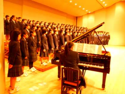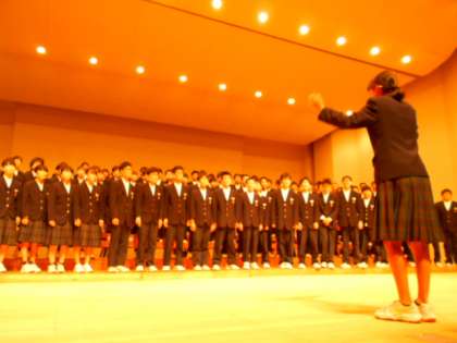 県民会館での合唱コンクール。3年生学年合唱の様子です。